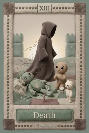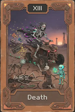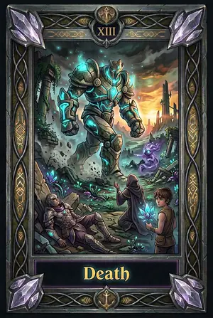 Every card is generated with the same frame, the same artistic hand, the same visual language. Death works alongside The Fool. The suits feel unified. Your deck is ready for print or personal practice.